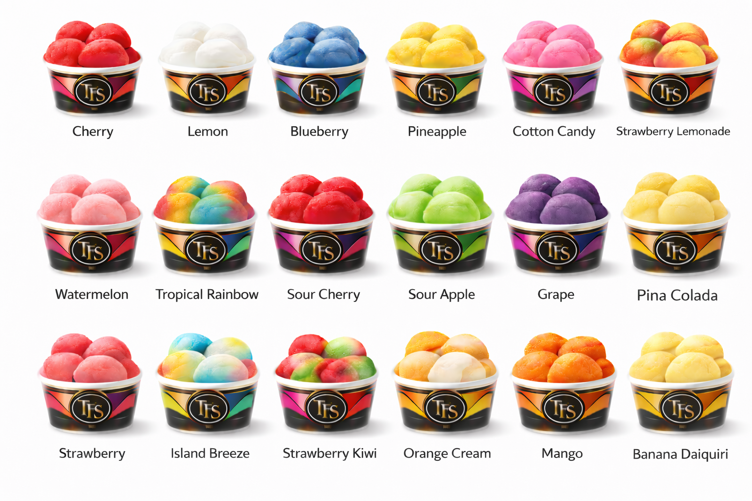 Flavor variety: Choose from a rotating menu of classics and seasonal specialties—lemon, mango, strawberry, rainbow, and more. Custom flavor requests available for larger bookings.